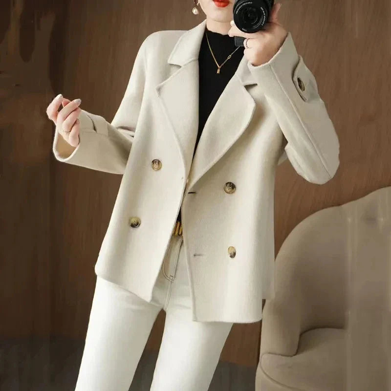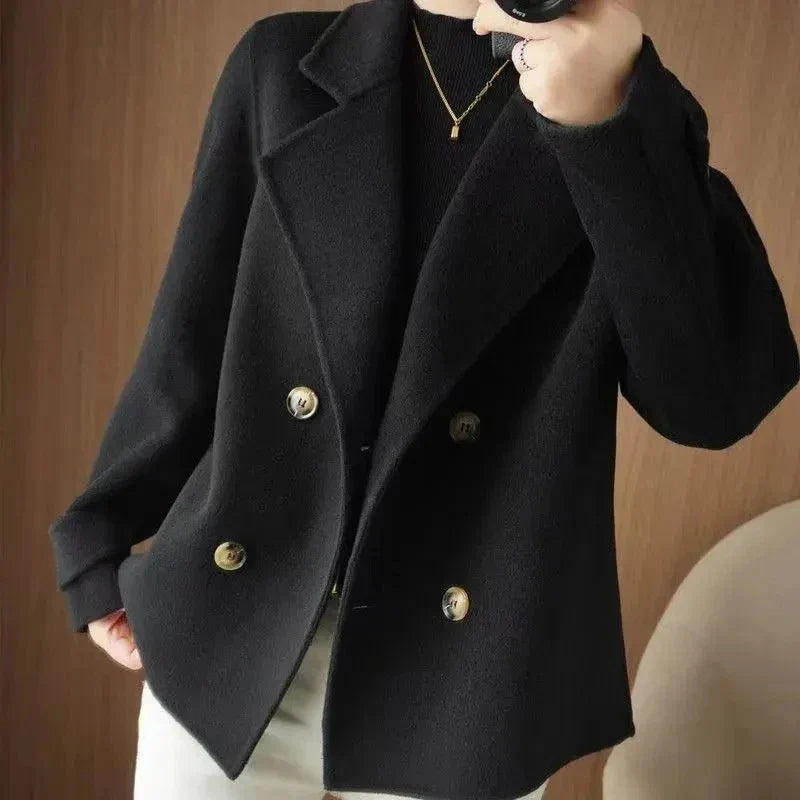 ✔️ Estilo Clássico e Chique: Deslumbre-se com a sofisticação atemporal deste casaco curto.